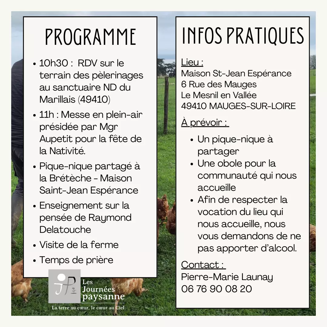 📜 [Invitation] Dimanche 7 septembre 2025 – Rencontre régionale Pays de la Loire au Sanctuaire ND du Marillais (49), puis au Mesnil en Vallée avec l’association Saint-Jean-Espérance.