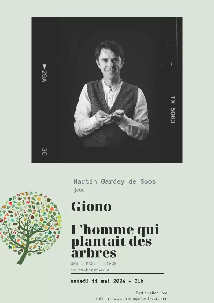 21h – Pièce de Giono « l’Homme qui plantait des arbres » jouée par Martin qui fera ensuite passer son chapeau